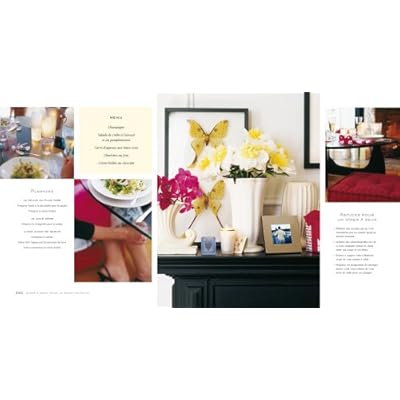 Ce livre est truffé de bonnes idées pour recevoir ses amis. Des menus entiers sont proposés, à la fois originaux et simples à réaliser... Ca donne vraiment envie de recevoir !! De plus, les photos sont vraiment belles. Je dirais que ce livre est à la fois pratique et poétique.